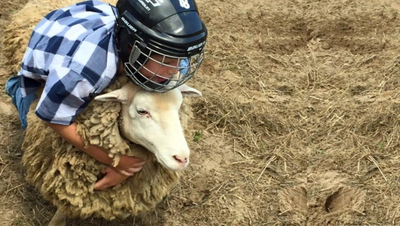 To be a wool rider, a kid has to be between the ages of 4 and 7 and 60 pounds or less. Entry fees are $20 and cover the cost of renting the sheep. Parents sign a waiver to let their children participate and kids wear protective gear, including a optional vest and mandatory helmet with a metal face guard on the front. Just like in the rodeo, sheep are kept in individual chutes. After the kids straddle the sheep and the animals are released into an arena, they get six seconds to try and hang on. Shows go on rain or shine.